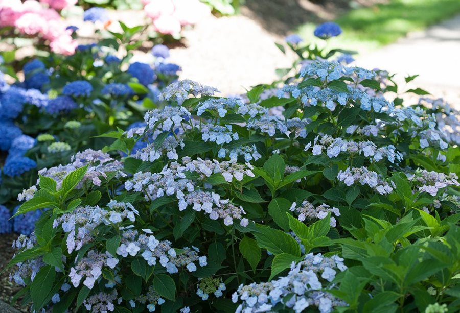 - Place mountain hydrangea in a mixed border for long-lasting color throughout summer.