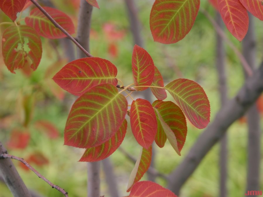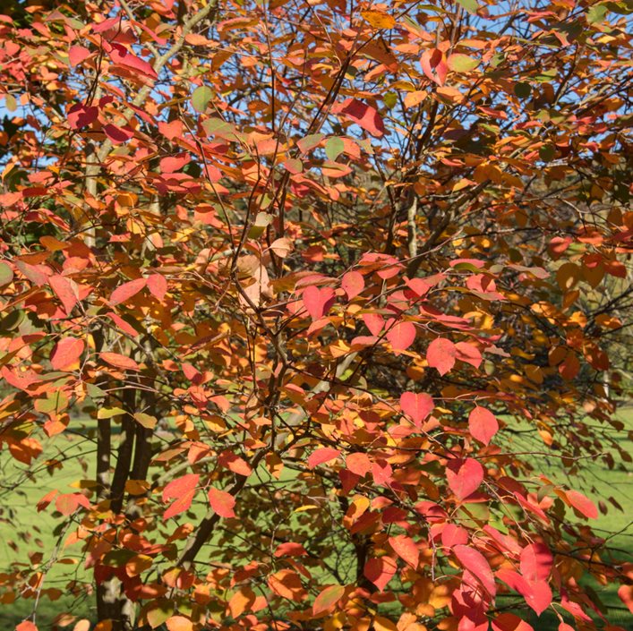 Leaves are typically oval or elliptical, emerging a reddish-bronze color in spring, turning dark green in summer, and finishing in fall with colors that range from golden yellow to scarlet red.