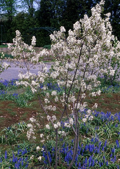 Add four-season interest to your garden with this beautiful spring-flowering tree.Serviceberry (Amelanchier) is a versatile native plant that can be pruned to grow as either a shrub or small tree, making it adaptable to various garden designs and space limitations. It also has outstanding year-round appeal, starting with an explosion of starry white blossoms in spring, quickly followed by clusters of edible blueberry-like fruits. In fall, the foliage lights up the garden by turning brilliant shades of gold, orange, and red. And in winter, the plant’s striking silvery gray bark is on full display.