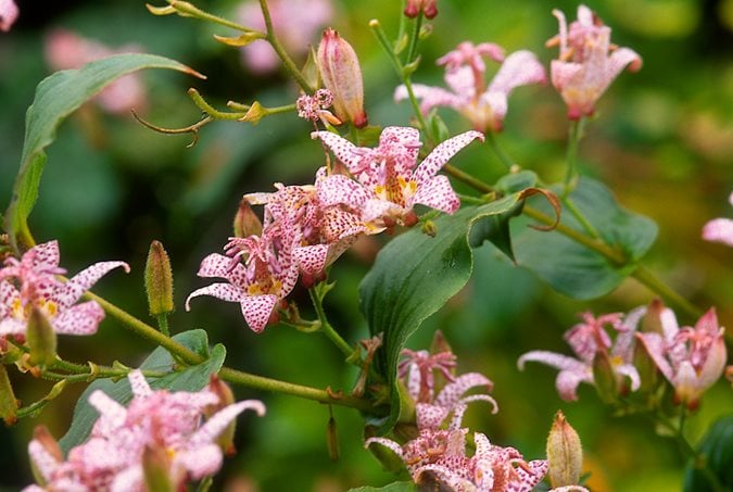 This exotic looking perennial is grown for the speckled orchid-like blooms that grow on tall, elegant stems. Flowers occur in shades of purple, burgundy, pink, or white, while the lance-shaped foliage is green or variegated. Plant this late blooming moisture lover near a water feature or in a woodland border in combination with other plants.