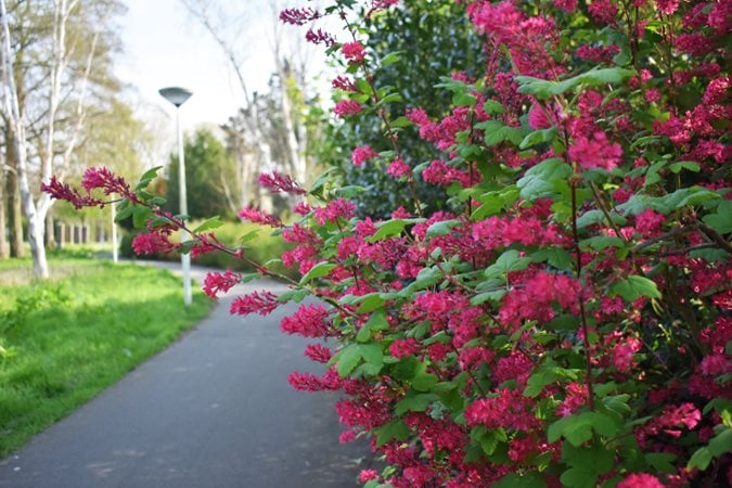 Flowering current is a medium-sized deciduous shrub known for its prolific clusters of red, pink, or white flowers in spring that are followed by edible black berries. This North American native attracts wildlife and can be grown as informal hedging or a stand-alone specimen. Plants perform well in partial shade with protection from hot afternoon sun.