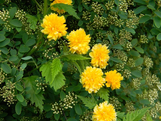 Japanese rose is an often-overlooked deciduous shrub with single or double yellow flowers. The highly attractive bright green or variegated foliage resembles birch leaves, with distinct veining and toothed edges. Mass along a slope to appreciate the elegant arching habit, or use as an underplanting in a woodland border. Plants prefer dappled or partial shade, with profuse bloom in most light conditions.