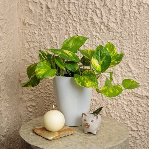 One of the easiest houseplants to grow, this tropical vine can be trimmed and kept compact, allowed to trail from hanging baskets, or trained up vertical supports. Comes in a variety of foliage colors and patterns. Learn more about how to grow pothos plants.