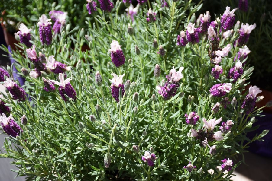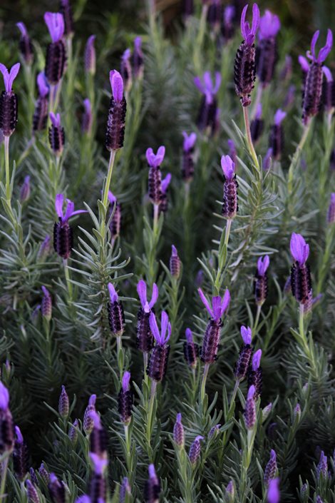 Spanish lavender, butterfly lavender, rabbit’s ears, bract lavender, topped lavender. May sometimes be incorrectly referred to as French lavender, a name that should be reserved for Lavandula detata.