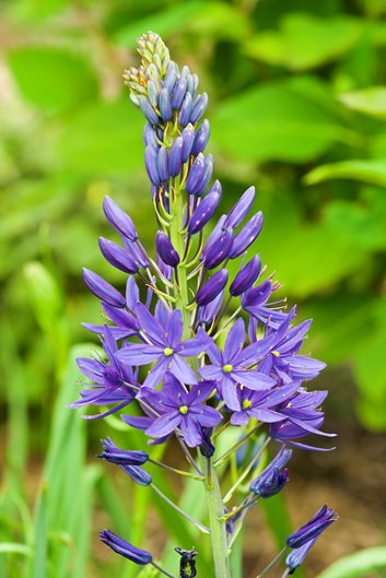 The elegant flower spikes of camas lily produce clusters of star-shaped flowers in colors of blue, purple, or white. A member of the lily family, the bulbs of this North American native were an important food source for indigenous tribes and early explorers. Bulbs are cold hardy, long-lived, and naturalize well. Mass in drifts for the greatest impact.