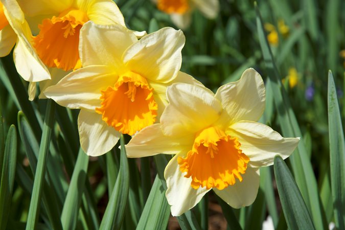 The cheerful trumpet-shaped flowers of daffodil are a sure sign of spring. There are hundreds of varieties in a wide array of sizes and forms, with colors of yellow, white, orange, peach, and bicolors. These reliable hardy bulbs are easy to grow and long-lived, providing many years of spring color in the landscape.