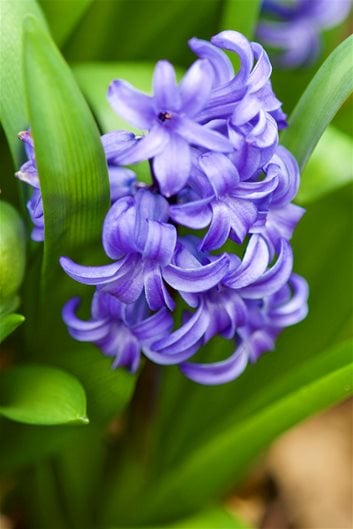 Hyacinth is one of the most intensely fragrant spring bulbs, with spiky clusters of star-shaped flowers. Blooms come in a rainbow of colors including blue, purple, red, pink, orange, coral, yellow, and white. This easy care bulb combines well with other spring bulbs that bloom at the same time, such as daffodils and early tulips. Plant where the sweet fragrance can be enjoyed up close.