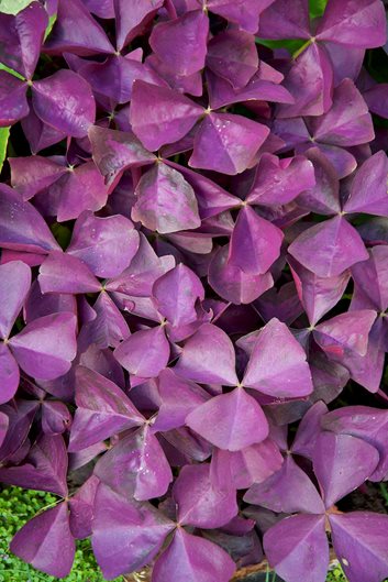 A member of the wood sorrel family, shamrock plant is grown for the attractive triangular or heart-shaped foliage. Flowers are white, pink, yellow, or bicolored, while the showy foliage occurs in colors of green, burgundy, purple, silver, and bicolors. Grown from tender rhizomes or bulbs, some can be vigorous spreaders when grown in optimal conditions. Overwinter rhizomes indoors in colder regions.