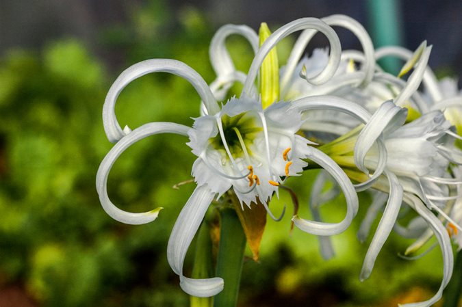 Also known as spider lily, the trumpet shaped flower center is surrounded by 6 spidery petals. Scented blooms are white, cream, or yellow. Plants are deer-resistant. Bulbs can be lifted and stored indoors over winter in colder regions.