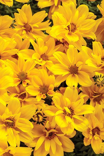 Extremely heat and drought tolerant, bidens will drape over the sides of containers with successive sweeps of colorful, daisy-like flowers all summer long. Since it has a wide-spreading, slightly stiff growth habit, this also makes an excellent ground cover.