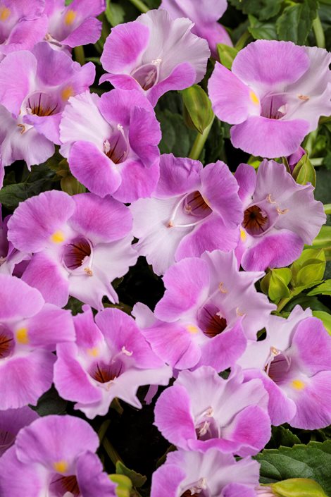 Trumpet-shaped flowers bloom in blue, purple, pink, white, yellow, and various bicolors, often with contrasting throats.