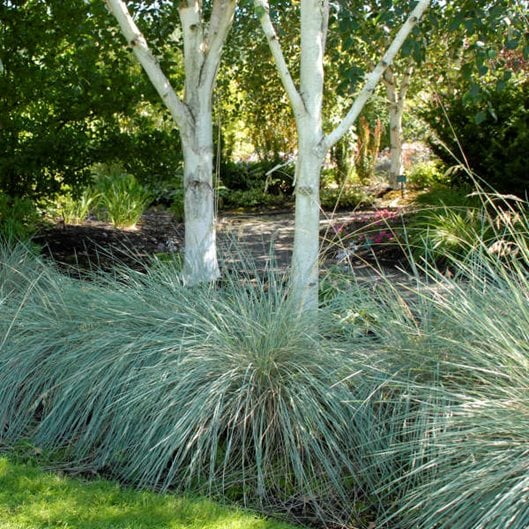 Steel-blue whisker-like foliage and tan seed heads complement most other colors, making this a versatile design choice. This fine-textured grass makes a striking accent in a container or the landscape. With tolerance to drought and poor soils, along with its spreading habit, this makes a good choice for massing in a bed or along a slope for erosion control. Smaller than blue oat grass, the compact size is especially suited to urban lots. Exceptionally hardy in colder regions.