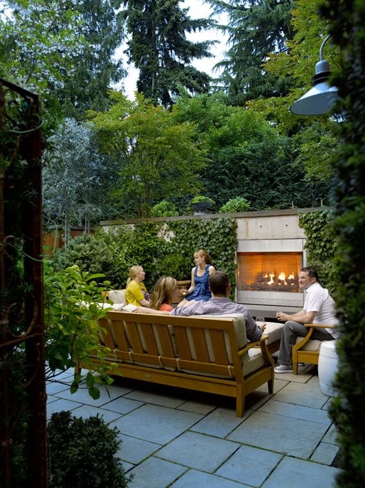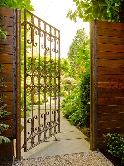Because their tiny, 1930s Tudor-style house has limited living space, the garden has become an extension of the residence. Traditional hardscape with strong, clear lines and formal plantings complement the home’s exterior style.