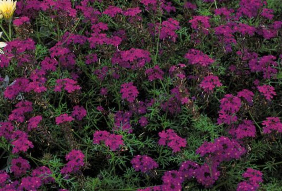 A trailing verbena characterized by a multi-branching growth habit, spreading up to 3 feet to create a dense low-growing carpet of blooms. Also mildew resistant and grow well under a wide range of weather conditions.