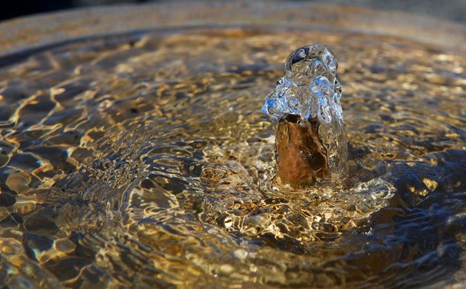 Decide what noise level is right for you and your yard. Water flowing from a stream or waterfall can be dramatic and invigorating, while the trickle of a fountain can be soothing and contemplative. A bird bath or small pot with standing water won’t have any noise at all.