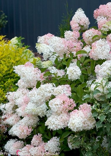 Prolific cone-shaped flowers occur all the way down to the ground on dense mounding plants. The delicate white panicles fade to pale pink, becoming bright pink as they age. Plant this compact variety in containers, foundation or mass plantings, or as low hedging.