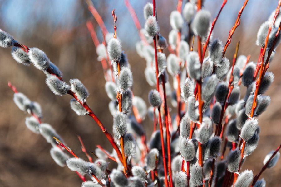 Upright, weeping, straight, curved, or twisted branches and stems can be brown, black, red, purple, or yellow. Pussy willow and other types are cut when plants are in the bud stage for early-season arrangements. Stems can be easily rooted from cuttings. Young flexible branches are used for weaving to make baskets, wreaths, fencing, trellises, furniture, and other structures.