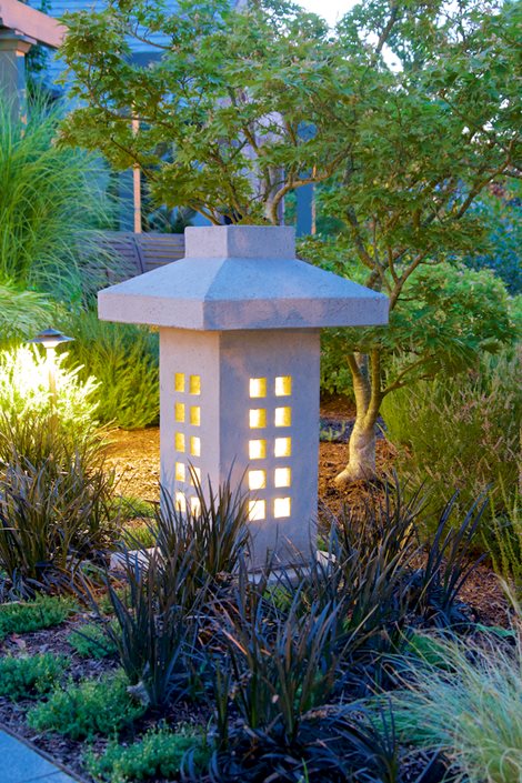 Stone pagoda lantern. Gardener: David Best. Designers: Barbara Hilty and Adriana Berry. Photo: Janet Loughrey.