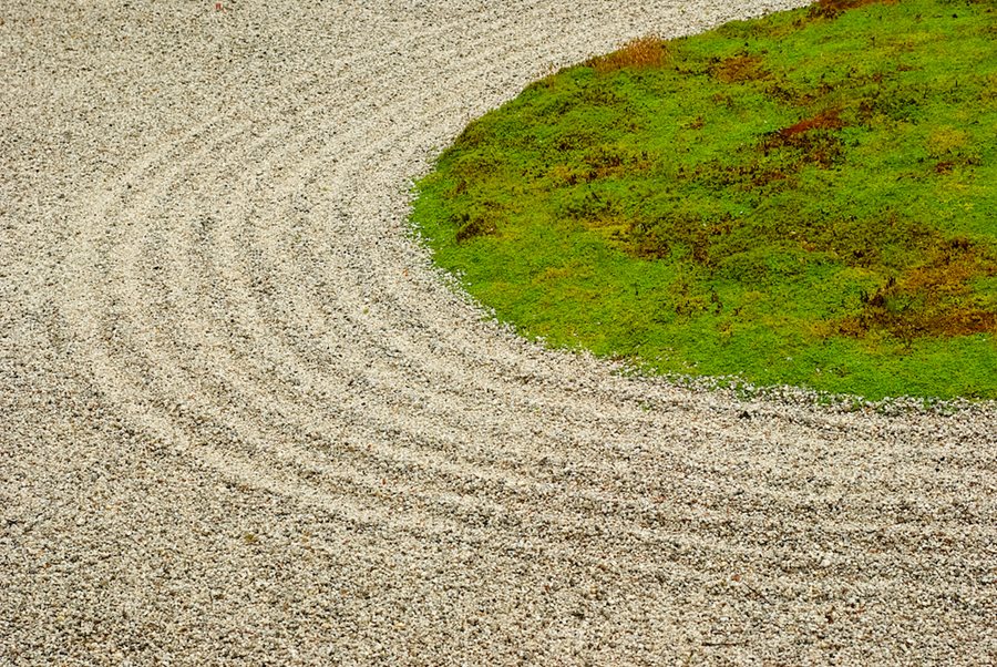 Gravel is an integral part of Zen gardens, with raked patterns having symbolic meaning. During the early and late part of the day, the low angle of the sun highlights the texture and patterns of the gravel, creating an ever-changing scene that’s visually engaging. The act of raking gravel is part of the meditative process and an acquired skill that helps improve mental concentration.
